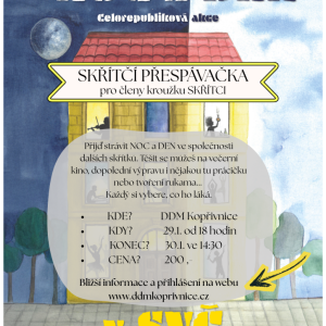 O pololetních prázdninách se v DDM Kopřivnice můžete těšit na přespávačku kroužku skřítků, ke Štramberské přespávače se může přihlásit kdokoliv a užít si večerní kino i dopolední hry a tvoření. Kdo by si raději zasportoval, má možnost přihlásit se na pololetní příměstský tábor.